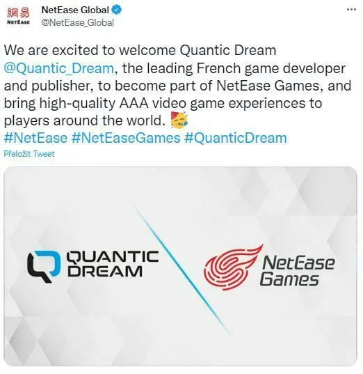 „Dnešní den znamená pro naše studio důležitý milník poté, co jsme byli čtvrtstoletí úplně nezávislí. NetEaseGames si váží naší tvůrčí svobody a nadšení našeho jedinečně rozmanitého týmu. Nyní budeme schopni urychlit vizi, kterou sdílíme jako tým, vytvářet přelomové hry, které se dotknou lidí na emocionální úrovni. Věříme, že to nejlepší od Quantic Dream teprve přijde,“ říká v oznámení David Cage.