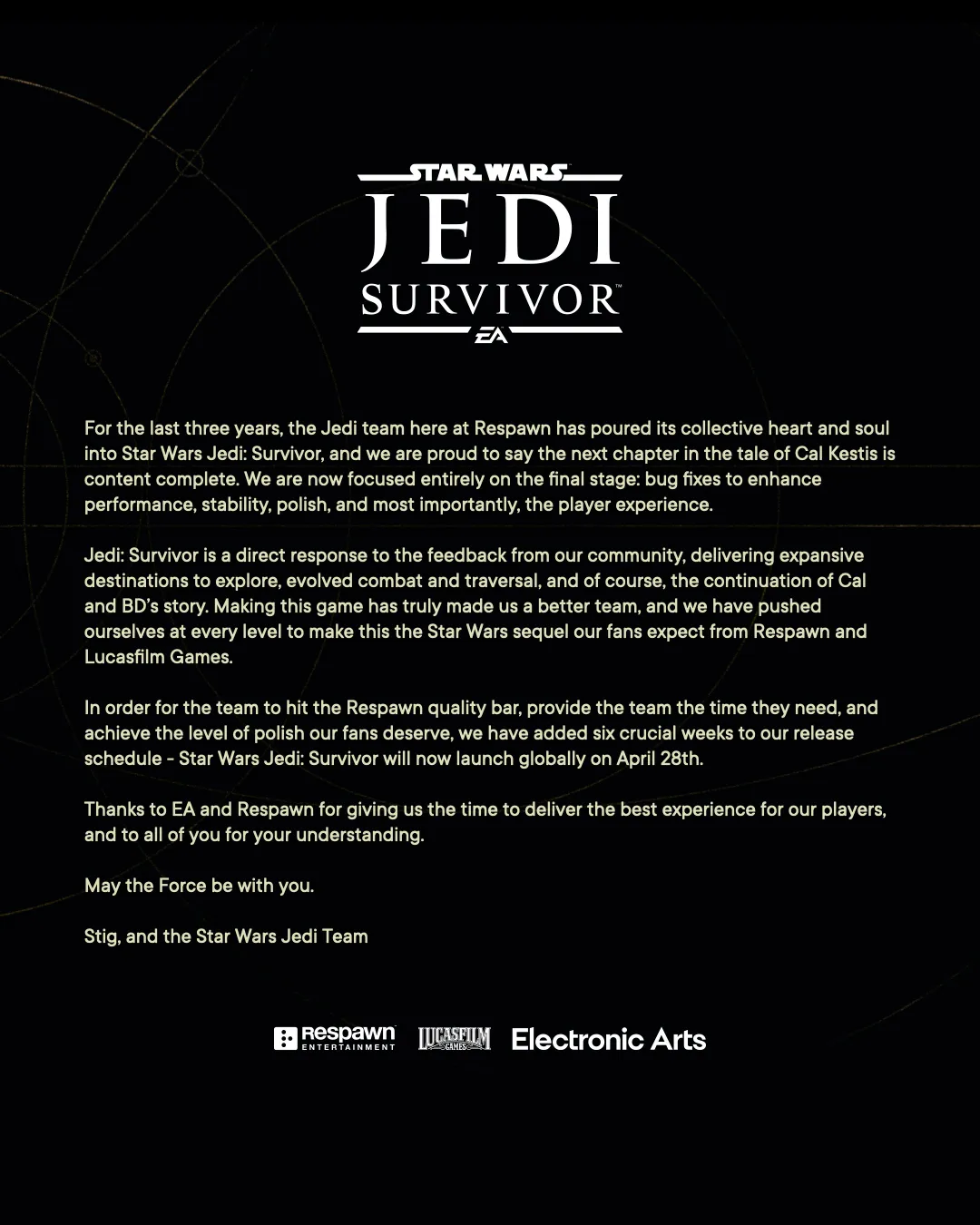 EA odkládá očekávanou akční hru Star Wars Jedi: Survivor na konec dubna