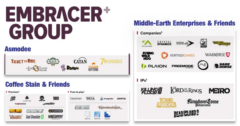 Pod Middle-earth Enterprises & Friends budou spadat studia jako Crystal Dynamics, Dambuster Studios, Eidos-Montréal, Flying Wild Hog Studios, Tripwire, Vertigo Games, Warhorse Studios nebo 4A Games. Mezi vlastněné značky pak bude patřit Dead Island, Killing Floor, Kingdom Come Deliverance, The Lord of the Rings, Metro a Tomb Raider. Zároveň pod tuto společnost bude spadat celý PLAION, Freemode nebo Dark Horse.