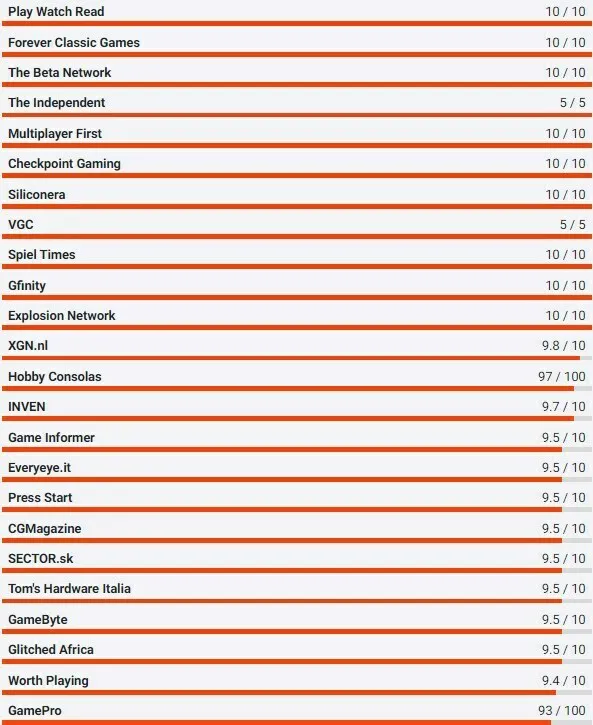 @argokib: z toho na Metacritic 10/10 IGN USA, IGN Portugal, IGN Brazil, IGN Adria. 9,5 IGN Italy. 9/10 pak IGN Spain, IGN France.