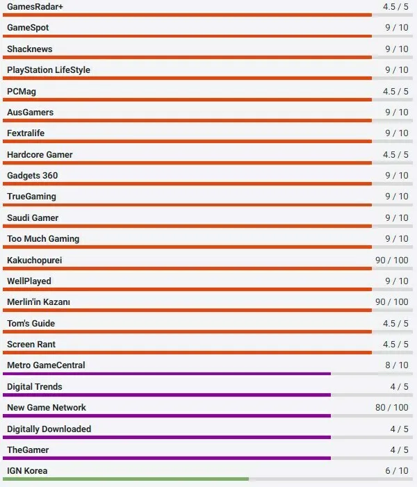 „God of War Ragnarök je strhující podívaná. Dokonalý scénář, perfektní herecké výkony, strhující akce – je to umělecké dílo.“ – 10/10 (IGN)