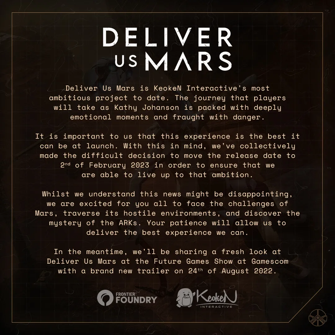 Deliver Us the Moon jsem zrovna včera zplatinoval na PS5 a byl to zajímavý zážitek. Odklad Marsu mi ani nevadí, v září tam mám momentálně asi tak pět jiných her.