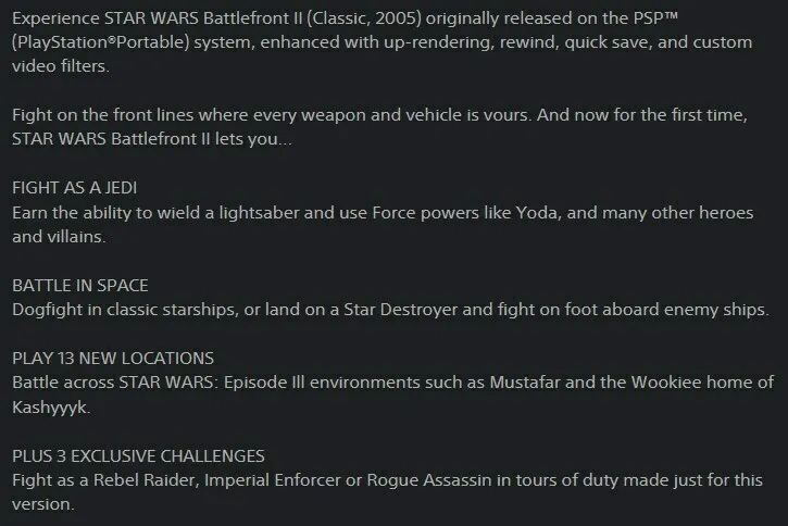 Klasická hra Star Wars Battlefront II pravděpodobně míří na PS4 a PS5