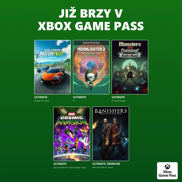 - 20. listopadu - The Crew Motorfest (Cloud, Xbox a PC) – Game Pass Ultimate, PC Game Pass