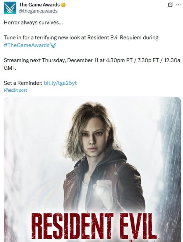 Zatímco Prince of Persia: The Sands of Time Remake bude na The Game Awards 2025 chybět, s novou ukázkou se vytasí očekávaná hororová akční hra Resident Evil Requiem od Capcomu.