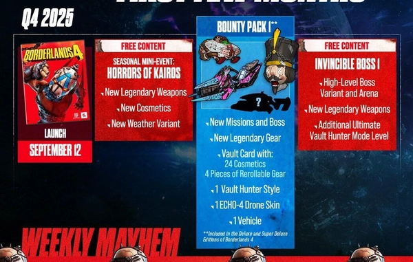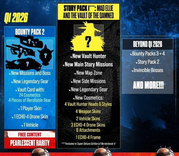 Vývojáři dnes také potvrdili, jak bude vypadat podpora po vydání. Hráči se mohou těšit jednak na sezónní eventy s novými zbraněmi a kosmetikou, ale také placené Bounty Packy s novými misemi, bossy, legendárním vybavením a dalšími novinkami. V plánu je i příběhové rozšíření, které bude odhaleno až později, ale nabídne nové příběhové mise, novou zónu a tak dále.