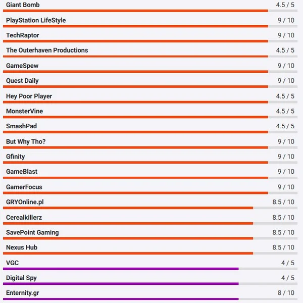 Na OpenCritic je v současnosti průměrné hodnocení 90%, na Metacritic pak 88%.