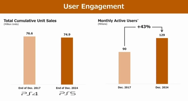 - Během posledních tří měsíců se prodalo 95,9 milionů her na konzole PlayStation, což je o 6,2 milionu více než ve stejném období před rokem. Z toho bylo 11,6 milionu first-party her.