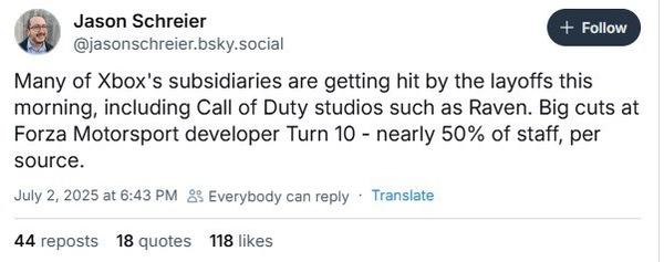Studio Turn 10 mělo propustit polovinu svých zaměstnanců, propouštění se dotklo i studií pracujících na Call of Duty