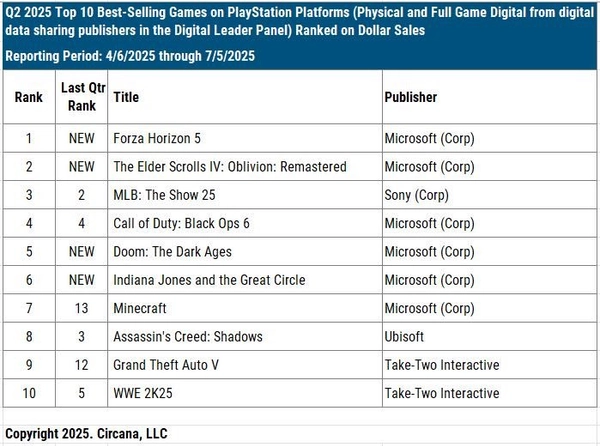 - Za poslední čtvrtletí byl Microsoft největším herním vydavatelem na PlayStationu. „V tomto čtvrtletí jsme největším vydavatelem na PlayStationu.“ Hned šest z deseti nejprodávanějších her na PlayStationu v Severní Americe vydal Microsoft (Indiana Jones and the Great Circle, Forza Horizon 5 nebo Doom: The Dark Ages).
