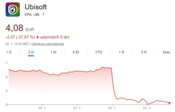 Není divu, že reakce trhu byla po těchto oznámení nemilosrdná a akcie se rázem propadly o více než 36%. Jde o největší jednodenní pokles v historii Ubisoftu. V současnosti je jejich cena 4,16 euro, což je opravdu hodně děsivé. Analytik společnosti Cantor Fitzgerald Edward James tyto události okomentoval slovy, že je to jasná ukázka toho, že současný provozní model nefunguje a společnost ztratila kontrolu nad vývojem svých her.