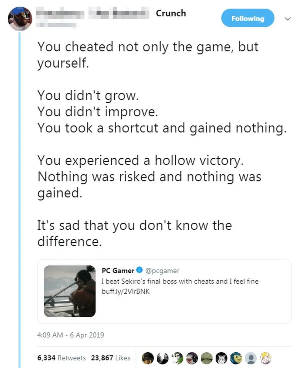 Opět další elaborát, který by se dal spláchnout jedinou větou: "Cítím se uražen, protože jsi napadl mou oblíbenou hru." 😆