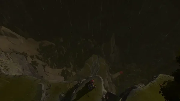 Ještě se podíváme na survival část hry. Máme zde klasicky ukazatel zdraví/únavu, staminu bez ukazatele, pak také hladinu sytosti, hladinu tekutin a hladinu chladu. Ukazatel zdraví/únavy ubývá přirozeně při pádu, ale také při rychlé chůzi a běhu (proto mám za lomítkem „únava“). Doplňuje se spánkem, případně jídlem. Stamina určuje, jak dlouho se udržíte v úchopu, je tedy potřeba dělat pauzy a netrápit tělo v nepřirozených pózách, pak přijde křeč a pád. Ukazatel staminy je, jak jsem zmínil, skrytý nebo jsem alespoň nepřišel na to, jak ho zobrazit nebo kolik mám vlastně času v jednotlivých úchopech při nepřirozené pozici. Prostě se Aava rozklepe a ztmavne obrazovka. Pokud tohle nastane, tak už to moc zachránit nejde. Nemilosrdně následuje pád.