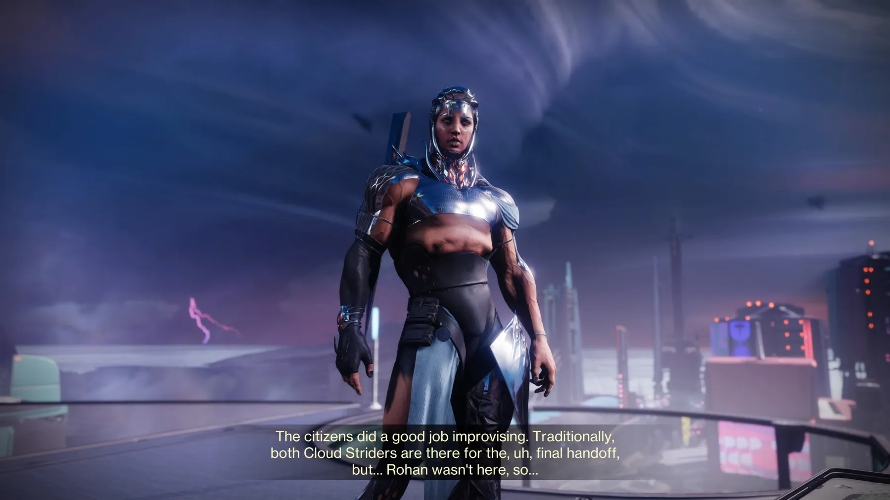 Kdo ve městě Neomuna žije, jsou dva Cloudstrideři – Rohan a Nimbus. Jde o naprosto nové postavy v rámci Destiny univerza, s nimiž se hráč setkává až zde během hlavní kampaně. Zatímco Rohan je veterán a má už něco za sebou, mladík Nimbus je hodně nezkušený a podle toho se i chová. Bohužel musím říci, že obě nová NPCčka jsou maximálně nezajímavá a špatně napsaná. Třeba Rohan se v příběhu objeví jen krátce, protože v rámci kampaně přijde o život. Má jít o tragickou scénu, která má hráče zasáhnout, ale bohužel se tak nestane. A to z mnoha důvodů. Těmi hlavními je ale hlavně skutečnost, že o samotné postavě zase tolik podrobností nepadne, a protože se dříve objeví jen v několika kratších scénách, nejde si k ní udělat nějaký hlubší vztah. Každému proto může být její osud naprosto ukradený. Není tam žádný emocionální dopad, jaký měla třeba smrt Caydea ve Forsaken, jenž mimochodem dostal na Toweru pomníček. A pak je tu Nimbus s trapnými a neuvěřitelně špatně napsanými dialogy i rádoby vtipnými hláškami ve stylu Marvelu, jenž se chová naprosto nelogicky a kolikrát tak dost narušuje některé události. Chvilkami jsem si proto říkal, co Bungie vedlo k tomu, aby takto slabě napsanou postavu do hry zakomponovalo a snažilo se na ní stavět část příběhu. Pokud se bude někdy vyhlašovat ocenění pro nejzbytečnější, nejbizardnější a nejhůře napsanou postavu v univerzu Destiny, Nimbus má své ocenění jisté.