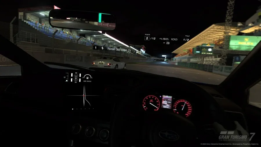 Obrovský vliv na pohlcení a závodění má vizuální zpracování. Gran Turismo 7 pro PlayStation 5 je jednou z nejhezčích závodních her, jakou jsem si mohl doposud zahrát. Proto jsem byl docela zvědav, jestli vývojáři nebudou muset do PlayStation VR2 verze udělat nějaké ústupky a hru osekat, jako tomu bylo už u výše zmíněného Driveclubu nebo Gran Turismo Sport. Když jsem se poprvé ocitnul v kokpitu v samotném závodě, byl jsem doslova ohromen tím, jak dobře hra ve virtuální realitě vypadá. Ano, některé detaily vývojáři museli snížit, prostředí je trochu méně ostré, ale pořád dostatečně vizuálně působivé. Společně s do detailu zpracovanými vozy a výborným nasvícením i HDR jde o krásnou podívanou. A vliv na to má zmíněné realisticky se chovající nasvícení. Nejvíce jsem si jeho kvalit všiml během nočních závodů. Světlo z umělého osvětlení se krásně odráží od palubek a vytváří nádherné efekty, navíc realisticky vypadají i odlesky světel soupeřů ve zpětných zrcátkách, s nimiž tedy musíte nově počítat. Kolikrát dokážou lehce oslepit a pak je těžší vybrat třeba zatáčku nebo udržet auto na trati.