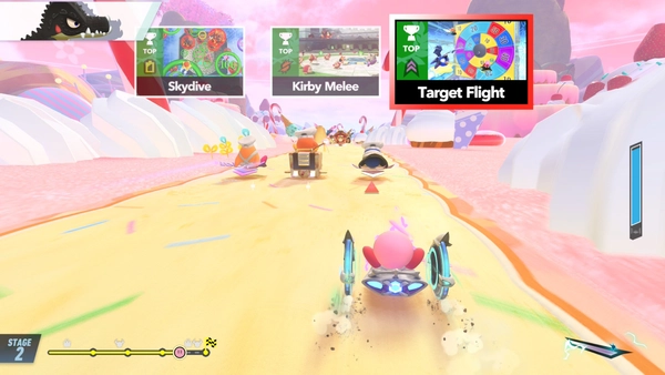 Velmi důležitou roli hrají v Kirby Air Riders i stroje, na kterých budete jezdit. I ty mají různé statistiky a speciální vlastnosti. Zatímco třeba základní Warp Star se hodí pro vyváženou jízdu a v ničem moc příliš nevyniká, Wingle Star se hodí ve chvíli, kdy rádi létáte ve vzduchu, případně Tank Star pro demolici protivníků. Záleží jen čistě na vašem herním stylu, jaký stroj si vyberete, přičemž důležitá je i kombinace s vybranou postavičkou a jejími statistikami. Nejde tedy jen o kosmetickou volbu, ale kombinace stroje a postavy značně ovlivňuje hratelnost.