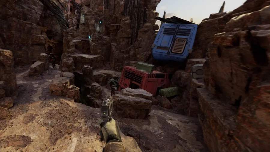 Jak už jsem zmínil, hra se odehrává v hodně lineárních úrovních. To může trochu zamrzet, že úrovně nenabízejí více možností průzkumu, na druhou stranu jsou úrovně dostatečně rozmanité a kolikrát nabízejí i krásné výhledy, a vlastně neurazí ani jejich solidní design, hodící se pro lineární akční hratelnost. Interakce v úrovních bohužel moc není, pokud nepočítám sem tam otevření dveří skrze několik druhů lehčích puzzlů, které hlavní hrdina většinou řeší skrze speciální pracovní náčiní. To slouží třeba jako vrtačka, ale umí i nahodit elektřinu nebo si poradit se svařeným poklopem. V druhé části kampaně dojde i na klasičtější prostorové hádanky, ale ty jsou hodně jednoduché a jejich řešení je patrné na první pohled.